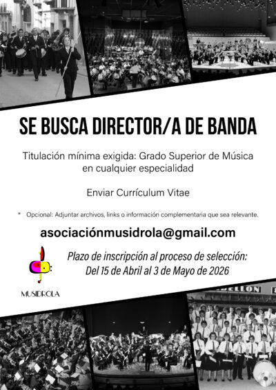 La Asociación Musidrola informa de la apertura del proceso de selección para cubrir el puesto de Director/a de Banda.